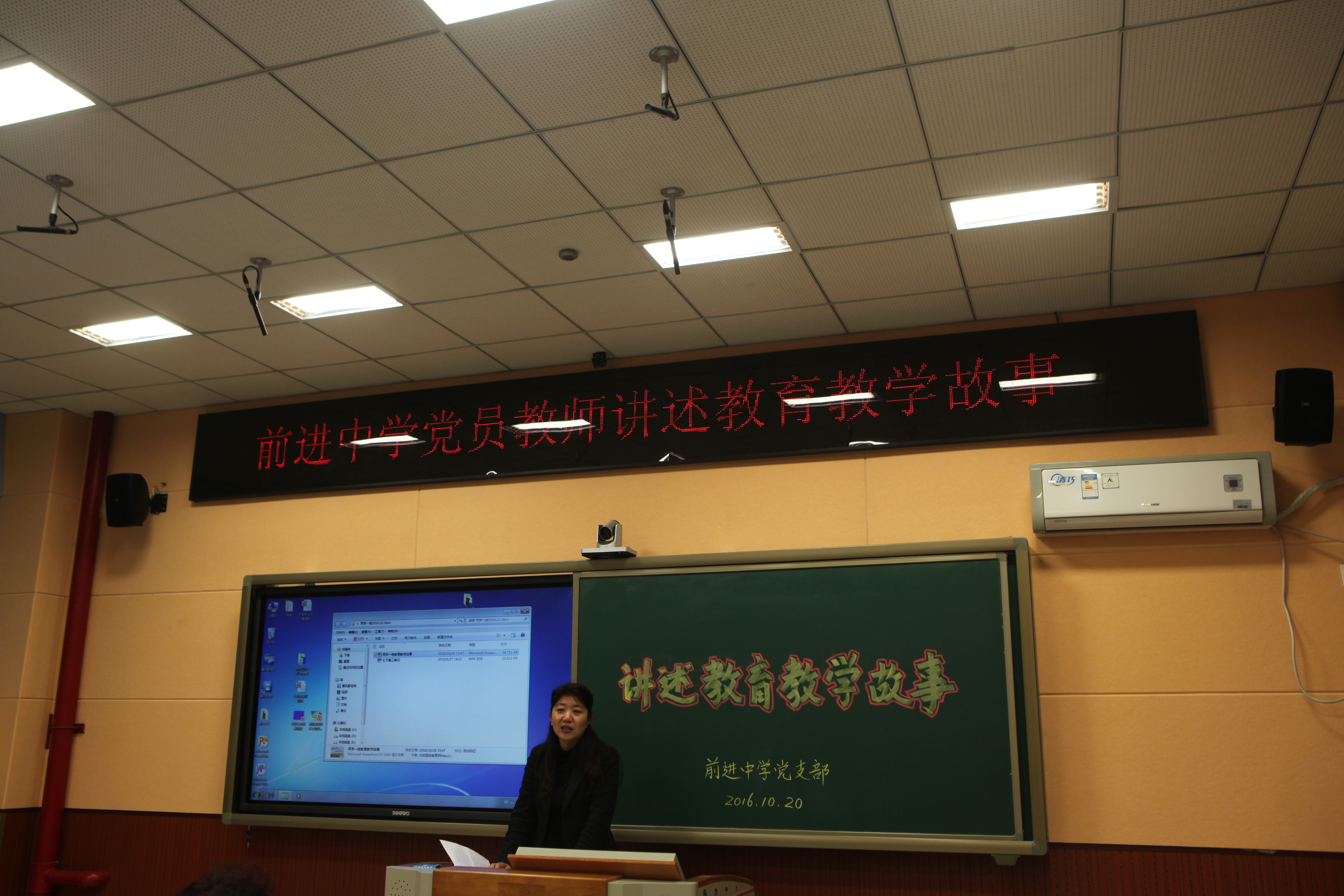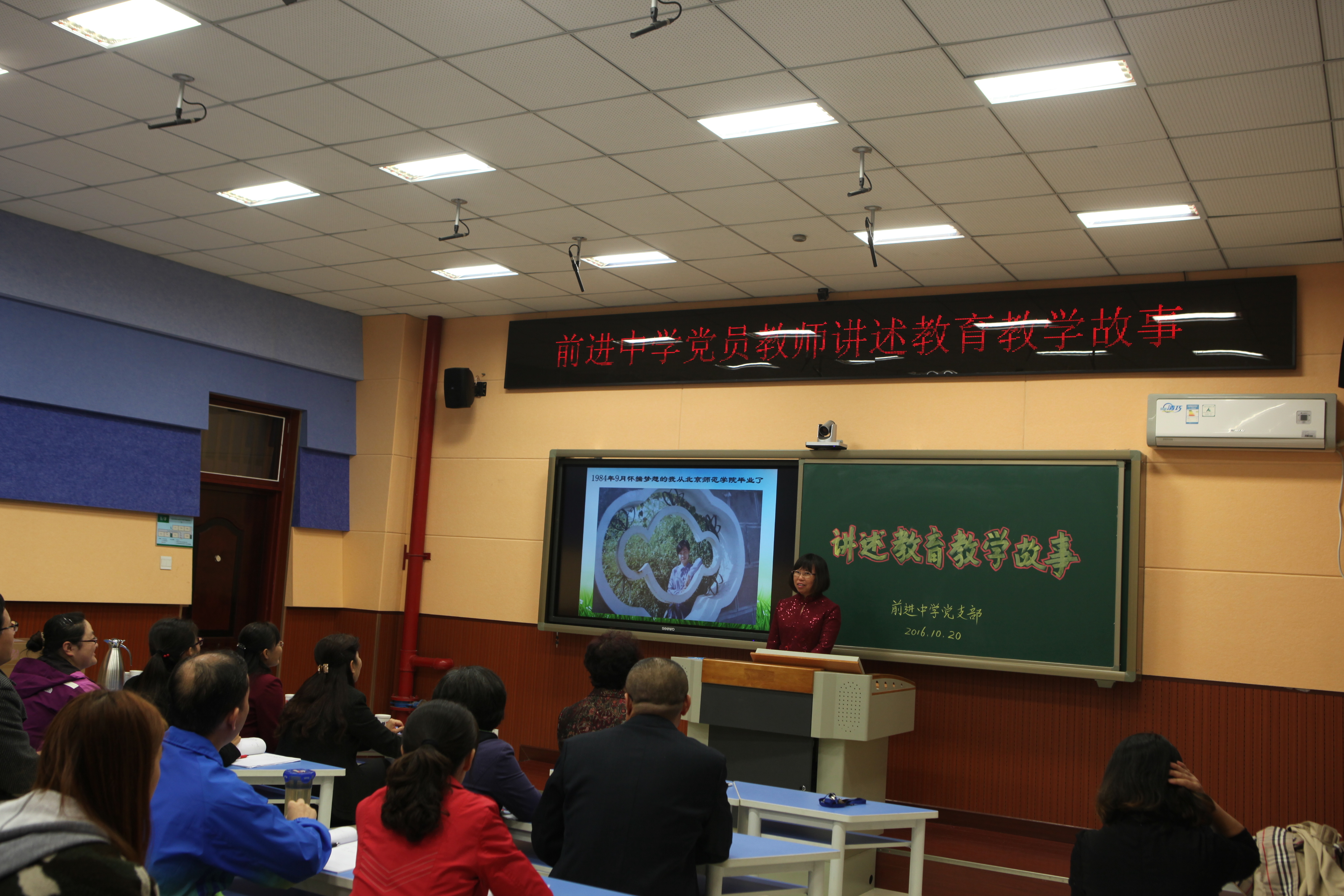 2016年10月20日,前进中学党支部为了深入推进“两学一做”学习教育活动向纵深发展,组织全体党员和青年教师聆听了三位党员讲述她们的教育教学故事,燕山教委党委书记王迪参加了此次活动。