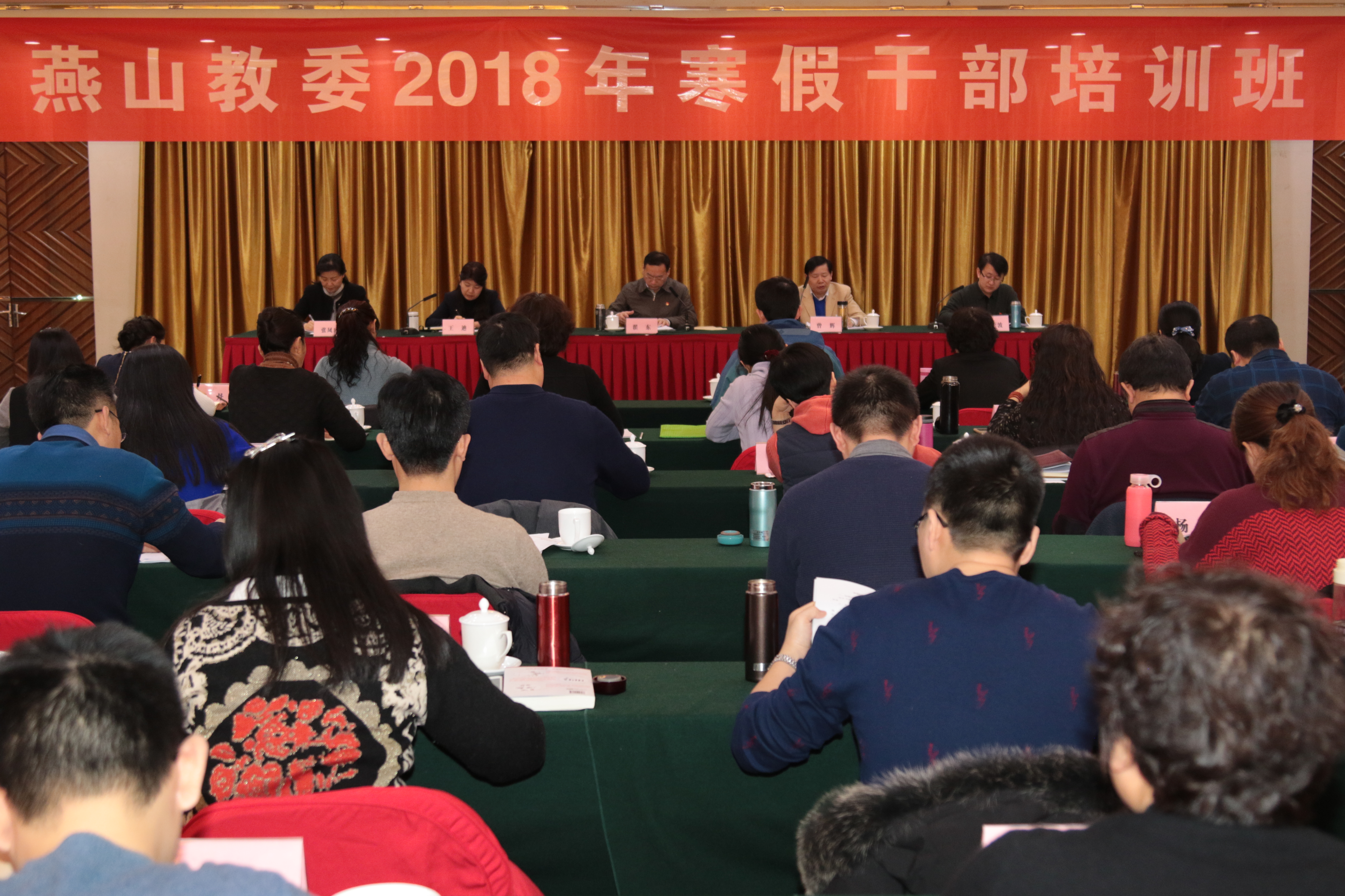 1月26日至29日,燕山教委举办2018年寒假干部培训班。燕山教委领导、机关各科室负责人、各单位副科级以上干部100余人参加了会议。房山区政府副区长、燕山工委书记翟东出席培训班并发表讲话,燕山工委副书记韩强对教育系统党的建设工作提出要求,燕山工委委员、宣传部部长于勇就意识形态工作进行专题培训,燕山办事处副主任曾辉转达了燕山工委、办事处对教育系统广大干部教师的问候。