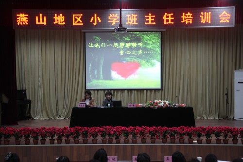 2012年11月20日,燕山教委邀请北京市东城区史家胡同小学语文教师、班主任、特级教师、北京市小学市级学科教学带头人万平老师在向阳小学阶梯教室为全地区小学班主任作了题为《和您在一起,静静聆听童心的呼唤》的讲座,培训会由燕山教委小教科武建芳老师主持,全地区小学德育干部、班主任共100余人聆听了讲座。《北京教育丛书》办公室吴元建老师、燕山教委小教科科长刘艳及向阳小学书记孟勤出席会议。