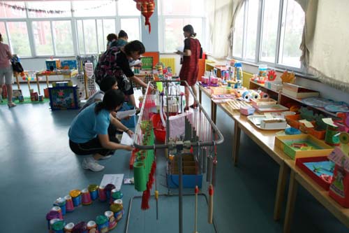 培训会后,小教科组织各园负责人对幼儿园教师上交的自制玩教具作品进行了评选,参加此次玩教具评选共118件作品,7月8日上午小教科组织各园教师对此次参展作品参观学习作为业务培训一项内容。